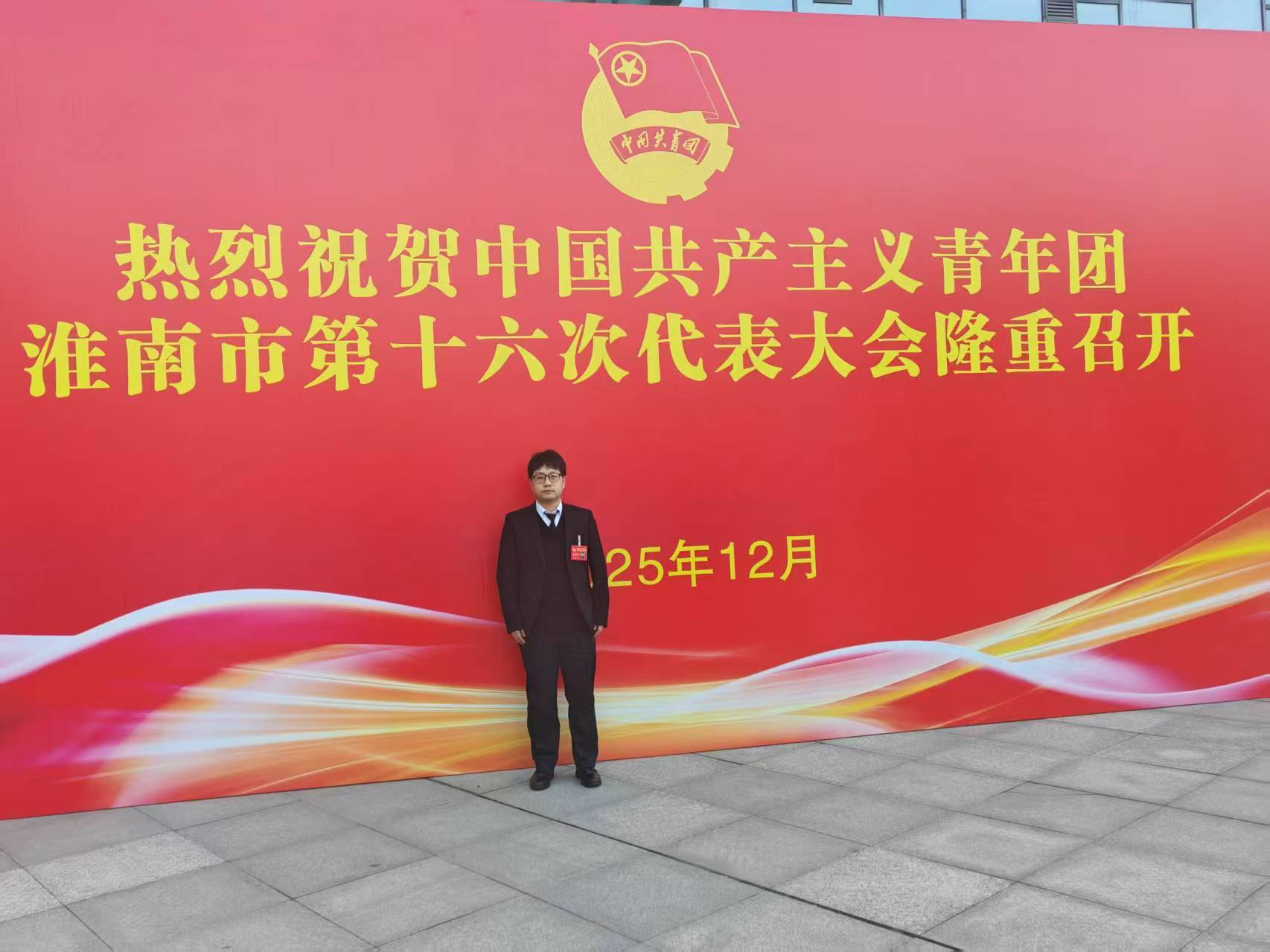 2025年12月15日至16日,淮南市共青团第十六次代表大会在市青年宫隆重召开。来自全市各条战线、各行各业的200余名优秀青年代表齐聚一堂,共商青年发展大计,共绘青春奋进蓝图。运输工程段团支部书记朱嘉兵作为基层团组织代表参加本次盛会。
