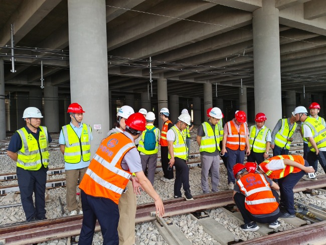 验收会严格遵循国家法规、行业规范及项目建设标准执行。验收组采用现场实体踏勘+ 内业资料逐项审查的双重核验模式,对工程建设质量开展全面、细致、严谨的综合评估。经核查,新大存车场轨道工程分部严格按设计及规范施工,实体质量全部合格,关键指标均达标;施工资料齐全规范,质量缺陷实现100%闭环整改;全过程安全文明施工管控到位,未发生安全质量事故,验收组一致同意通过验收。
