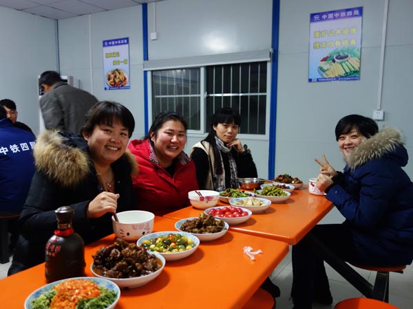 “哈哈,我吃到硬币啦!”司机杨师傅笑着说道,“看来明年我是要发大财啊!”“给我摸摸,让我来粘粘财气!”周围的职工们笑着抢着这枚“幸运币”。虽然窗外寒风瑟瑟,夜色深沉,但从这间小小的餐厅中传递出来的铁路人的热情足以融化冬季的寒冷,相信他们在2015年中将会再接再厉,圆满完成合肥地铁项目施工,为合肥市人民打造一条精品地铁工程。(邓昭昭)