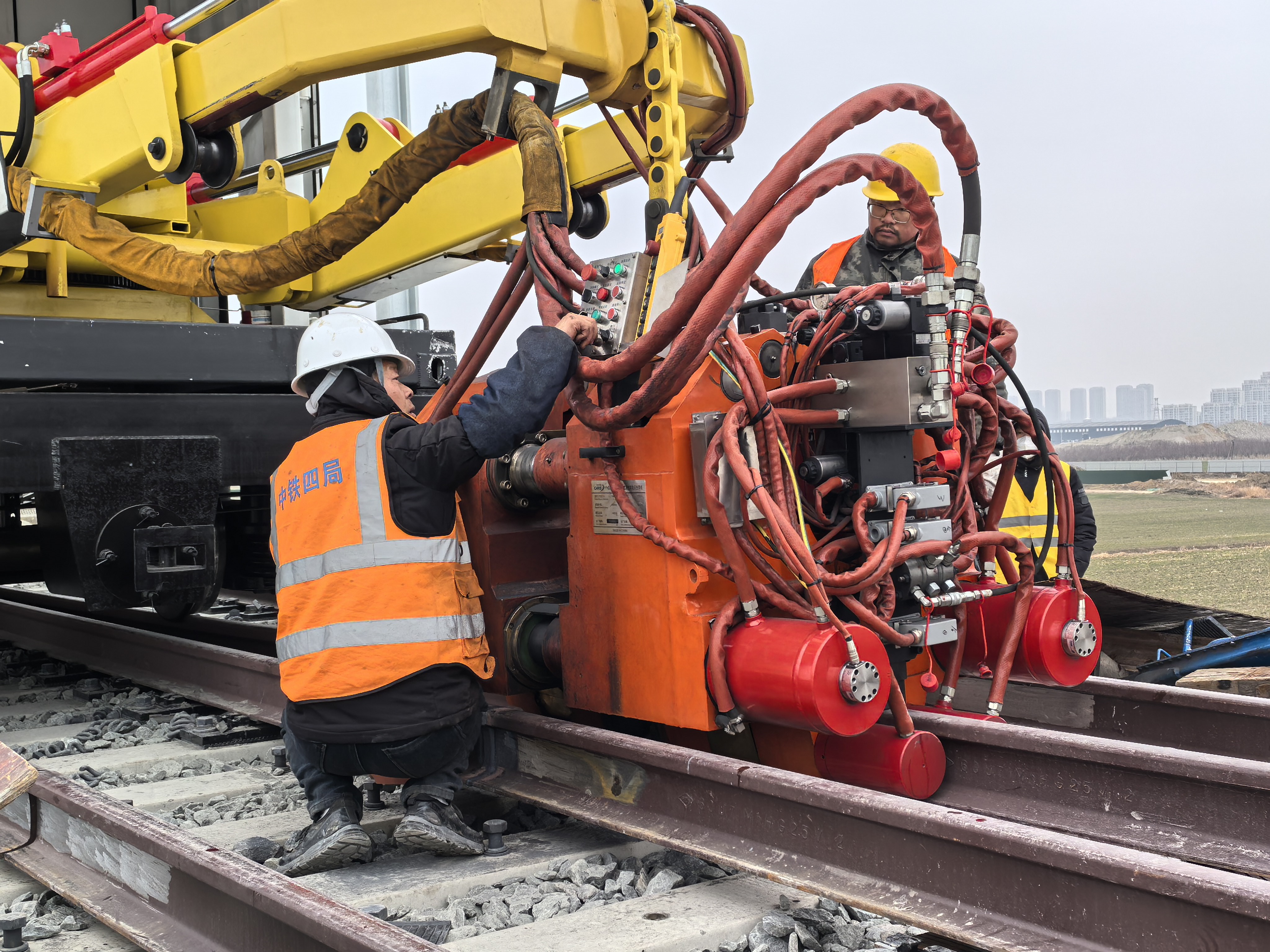 为确保首焊成功,项目部提前编制专项施工方案,完成焊机调试、人员培训及现场交底等准备工作。作业现场,施工人员分工协作,严格遵循钢轨检查、轨端除锈、精准对正、焊接成型、热处理、精磨探伤等标准化工序。新型设备实现焊接过程自动化控制,有效提升接头强度与韧性,其力学性能可达母材标准的90%以上,大幅降低裂纹、气孔等缺陷风险。