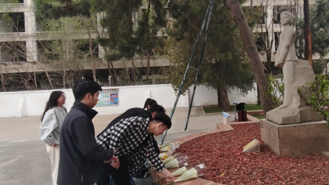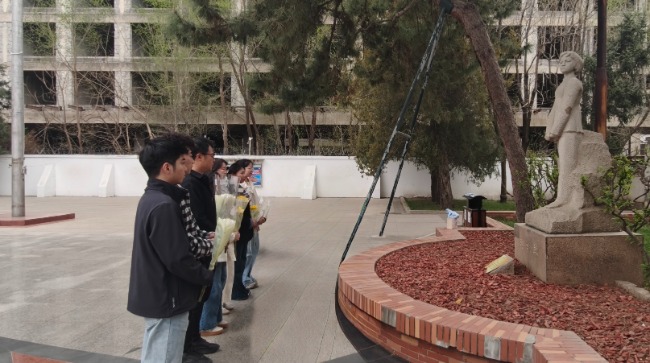 活动当天,青年团员们怀着无比崇敬与庄重的心情,列队来到红领巾广场。在刘胡兰烈士的雕像前,大家整齐肃立,神情专注。全体人员垂首默哀,在静默中深切追忆革命先烈的英勇事迹,表达内心的哀思与敬意。随后,团员代表缓步上前,向烈士雕像敬献鲜花。一束束鲜花寄托着大家对英烈的无限缅怀,也传递着新一代青年继承遗志、奋发前进的坚定决心。整个仪式简短而庄严,充满了对历史的铭记与对英雄的崇高敬意。