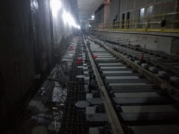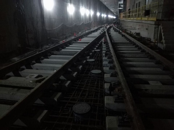 长枕式钢弹簧浮置板道岔设计共有6组,目前已同时施工完成2组,剩余4组2015年1月份也将开始施工。(王仕瑜 贾静)
