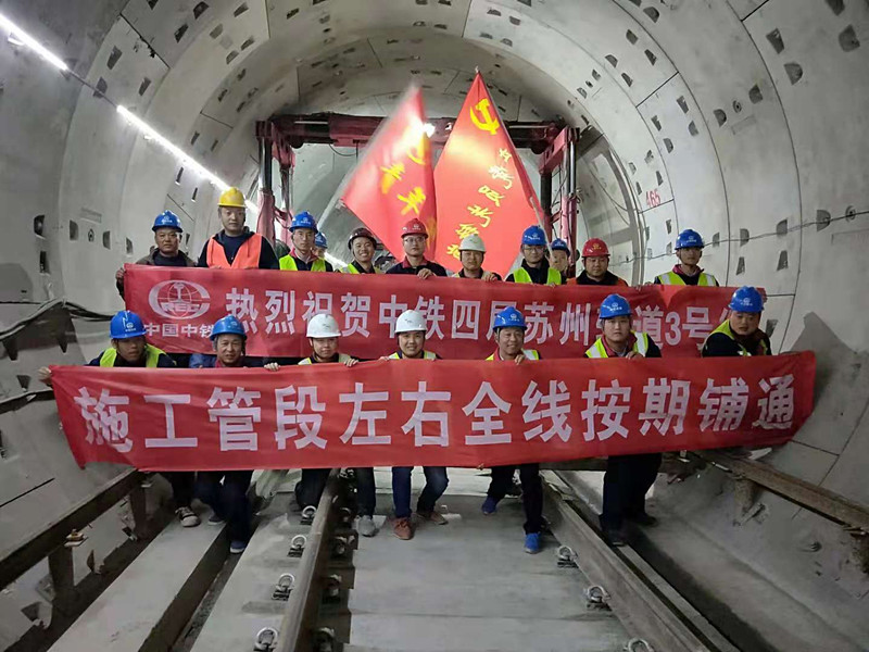 2018年12月6日,随着苏州地铁项目部狮玉区间最后一排轨排落下,标志着中铁四局八分公司承建的苏州地铁3号线铺轨工程按期实现“短轨通”目标,局副总经理张建场、八分公司党委书记马宜宏、苏州地铁3号线01标项目经理李根茂等携项目二十余人参加苏州市轨道交通3号线轨道工程轨通仪式。