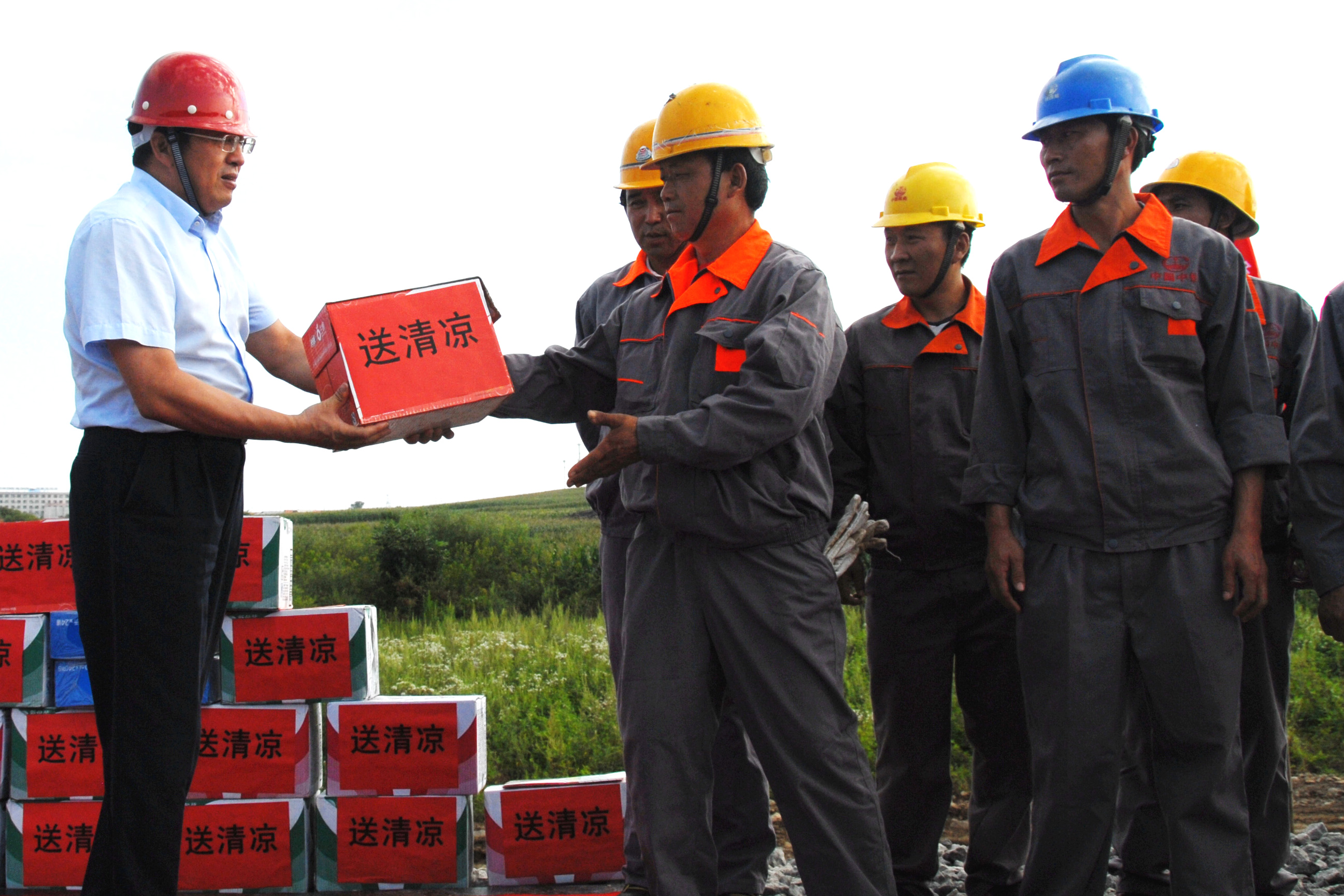 刘建媛、李朋谦和邓慎德在铺轨现场还向职工们送去了清凉慰问。(郑红梅 文图)