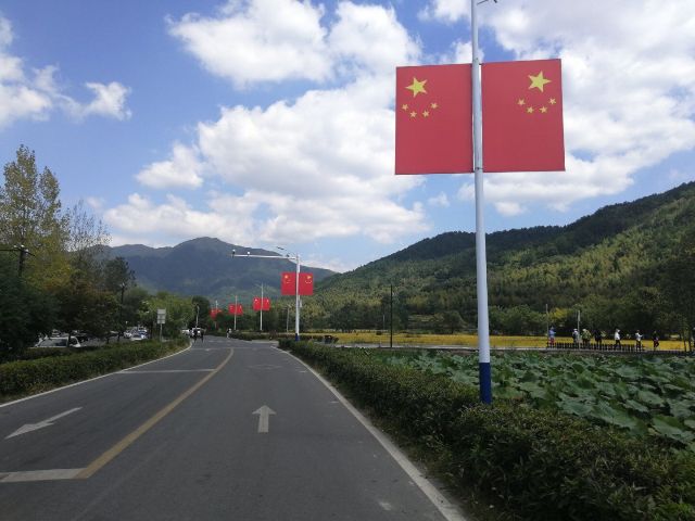 七十年前十月一日,金秋时节,天高云淡。伴随着伟人的一声呐喊,“中国人民从此站起来了”!那一刻起,五星红旗无时无刻都飘扬在:山岗、村庄、城镇、海岛和船舶上。她插在哪里,那里就不容丝毫侵犯!她飘扬在哪里,那里就是中国人的避风港。五星红旗飘扬在亿万儿女心中,中国就永远屹立在世界东方!