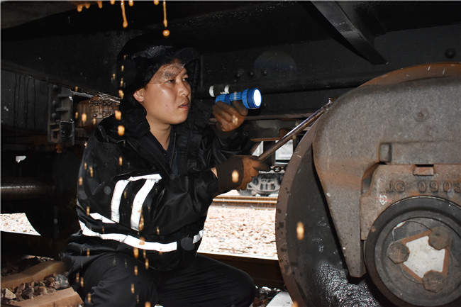 朔黄分处西柏坡列检作业场迎战强降雨保安全生产