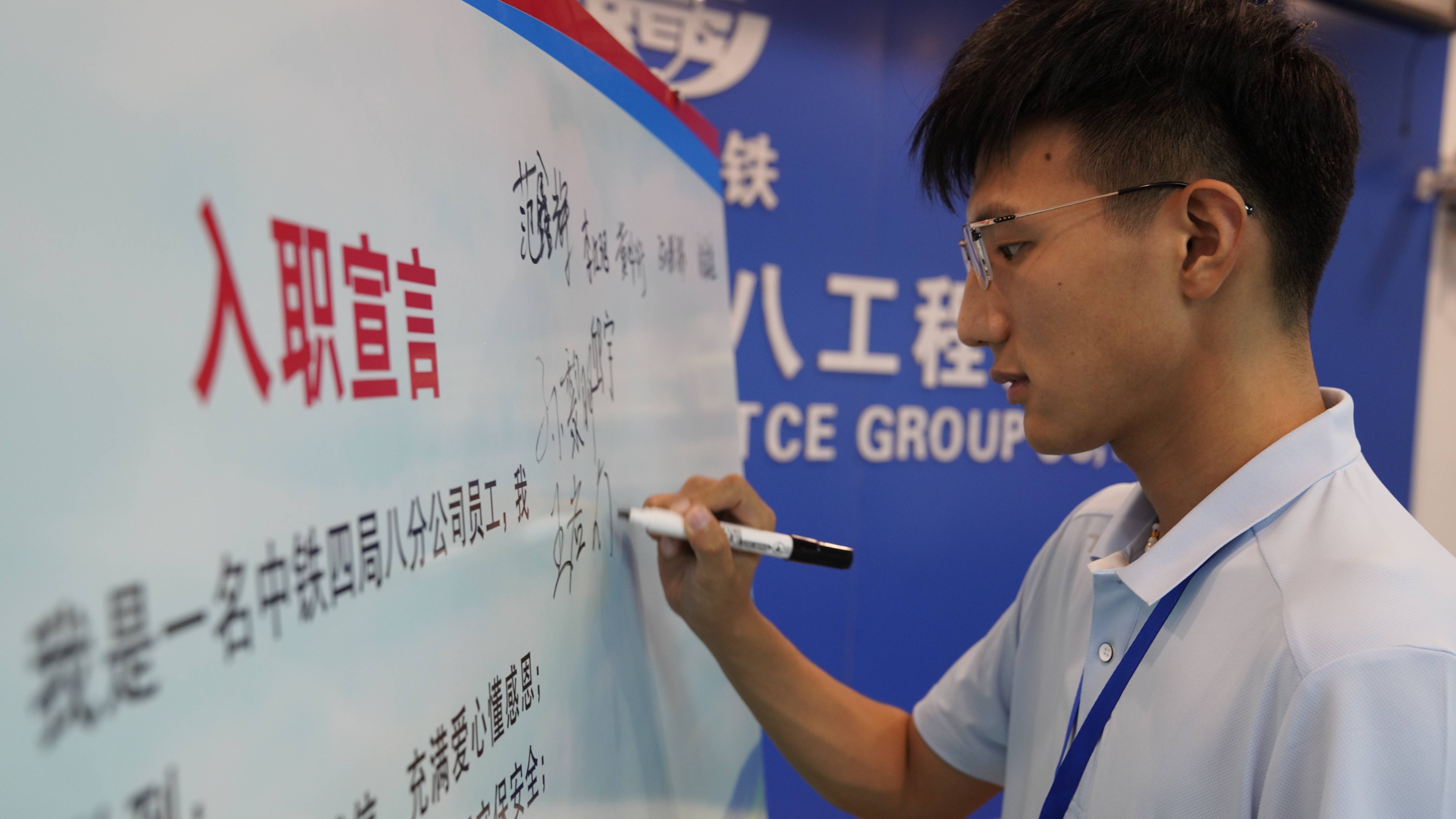 骊歌唱响,青春远航,母校用七载金色的光荫为我架起了一座“桥,穿过这座“桥”,我来到了中铁四局八分公司——这一人生新篇章的铁路“始发站”。母校和中铁四局,就是我人生的路桥。在这里,我不仅学习到了宝贵的知识,也收获到了珍贵的友谊。回想起培训的点点滴滴,难以忘记在入职培训期间老师们的谆谆教诲,素拓时同学们的激情飞扬,结课时的依依不舍。其中,最令我印象深刻的是在素拓期间,所有新职工一起为了一个目标而努力的那股子拼劲。素拓开始时我们形成了一支支队伍,如“星星队”“无敌队”等,名称响亮。起初,每支队伍都是竞争者,互相比拼。但到最后,当每支队伍都是为了一个目标而动员起来时,我们迅速的完成了目标。通过此事我亲身体会到了个人的力量有尽时,但集体的力量无穷尽!培训期间我也切身感受到了中铁人“逢先必争、逢旗必扛、逢冠必夺”和“勇于争先,永不满足”的精神风貌与企业担当。在紧张又期待的心情下,我来到了滁宁城际铁路项目部。习总书记曾经说过:“时间之河川流不息,每一代青年都有自己的际遇和机缘,都要在自己所处的时代条件下谋划人生创造历史。”在这里我将扎根基层,脚踏实地,务实工作,让我的青春在国家铁道建设现代化的路途上绽放出绚烂之花!