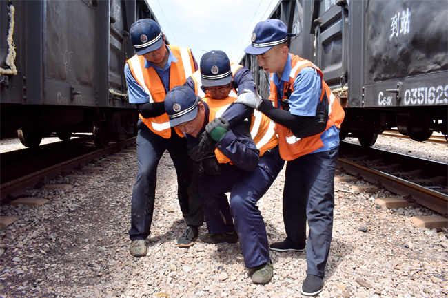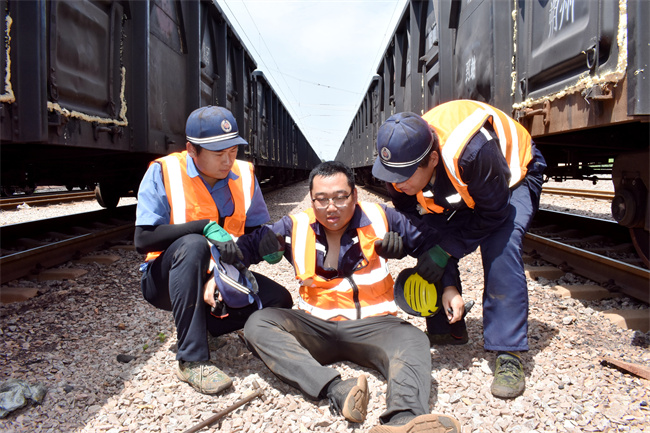 朔黄运输分处西柏坡列检开展高温中暑应急救援演练