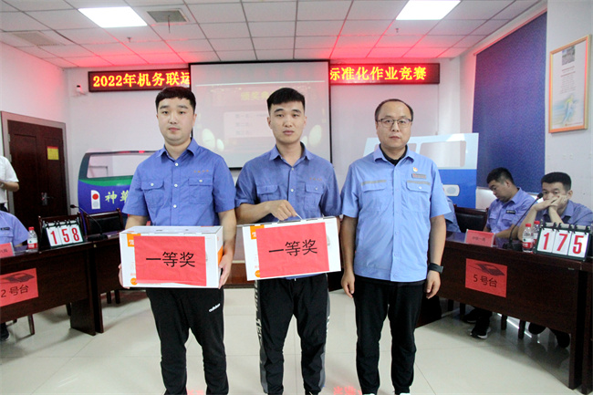 竞赛共包含三个环节,第一环节为“胸有成竹”,各参赛队伍通过回答选取题号内的两个问题,在规定时间内按照回答问题的完整度给予相应的分数;第二个环节为“模拟演示”,各参赛队伍通过选取题号,并根据题号内的作业场景对该作业环节进行模拟,涉及双机作业时邀请现场观众配合完成,最后按照参赛选手作业标准完成情况进行打分;第三个环节为“眼疾手快”,各参赛队伍通过观看三段标准化作业视频,查找视频中存在问题,在规定时间内按照查找问题数量及准确度进行打分,各环节结束后,由裁判组对各队伍进行总分统计,并按照分数排名对获胜前三名进行颁奖。活动中,各参赛选手表现十分精彩,其中第二环节的标准化作业模拟演示给现场评委及观众留下了深刻的印象,现场气氛非常活跃。经过激烈比拼,最终朔黄运输分处参赛队伍获得了此次竞赛的第一名。