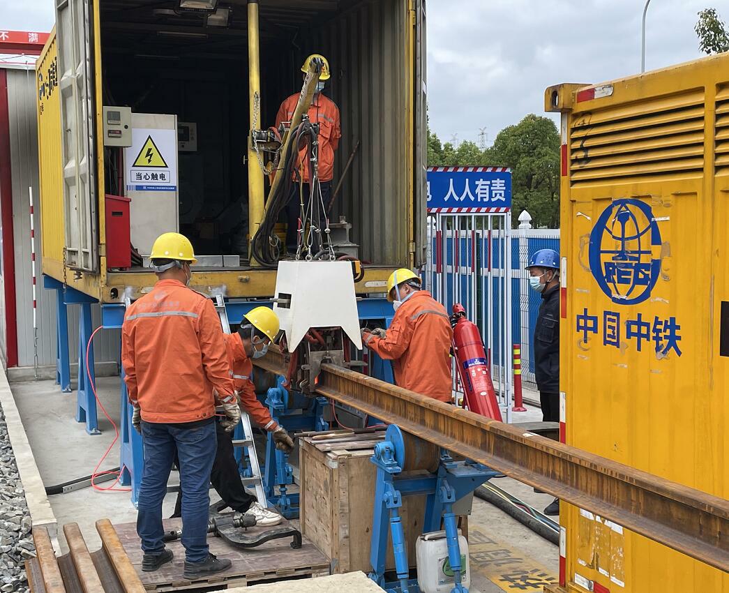 中铁四局上海地铁维保项目部富锦路焊轨基地经过前期2个月的有序、安全的紧张筹建,已于11月初建设完成,在完成钢轨焊头落锤实验并顺利通过后,11月13日正式建成并开始焊接第一根长轨。这标志着由中铁四局八分公司承揽的上海地铁1、2、10号线换轨大修工程长轨焊接基地--富锦路焊轨基地开始正式投入量产,后续将为上海地铁轨道交通1、2、10号线换轨大修工程提供百米长轨,实现基地自主焊接、百米大列装卸、现场焊接换铺流水线作业。焊轨基地建设完成后,围栏内区域进行施工单位自管。