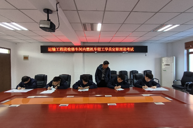 11月25日上午,在运输工程段会议室,5名2021年入职的新学员正在进行定职考试。此次定职考试由公司人力资源部组织,运输工程段承办