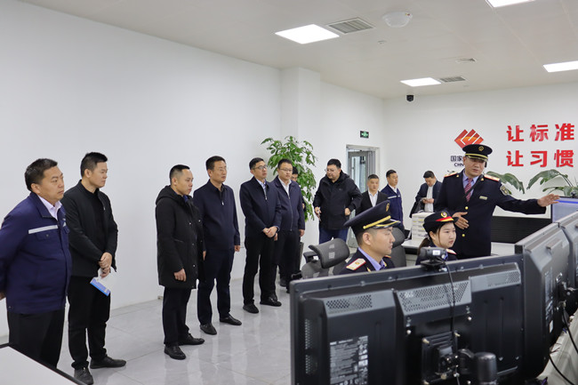 考察团在河北省石家庄市平山县朔黄运输分处进行了实地走访调研,参观了朔黄运输分处行车室、整备库和列检所,并添乘机车全线考察了八分公司运营的敬业集团铁路专用线,详细了解了专用线行车组织作业流程、安全管理规范和货物牵引运输任务完成情况,就专用线建设、运维模式、安全把控等与运输工程段及朔黄运输分处负责人进行沟通交流。