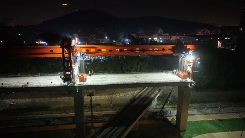 湖北路站至湖南路站区间由41孔箱梁及3座连续梁组成,该区间处于马鞍山主城区,为确保本次夜间施工顺利进行,项目部提前向马向铁路产权单位申请批准后才施工,同时项目部提前发布施工公告,走访居民,取得支持和理解,安全顺利的完成了本次架设任务。