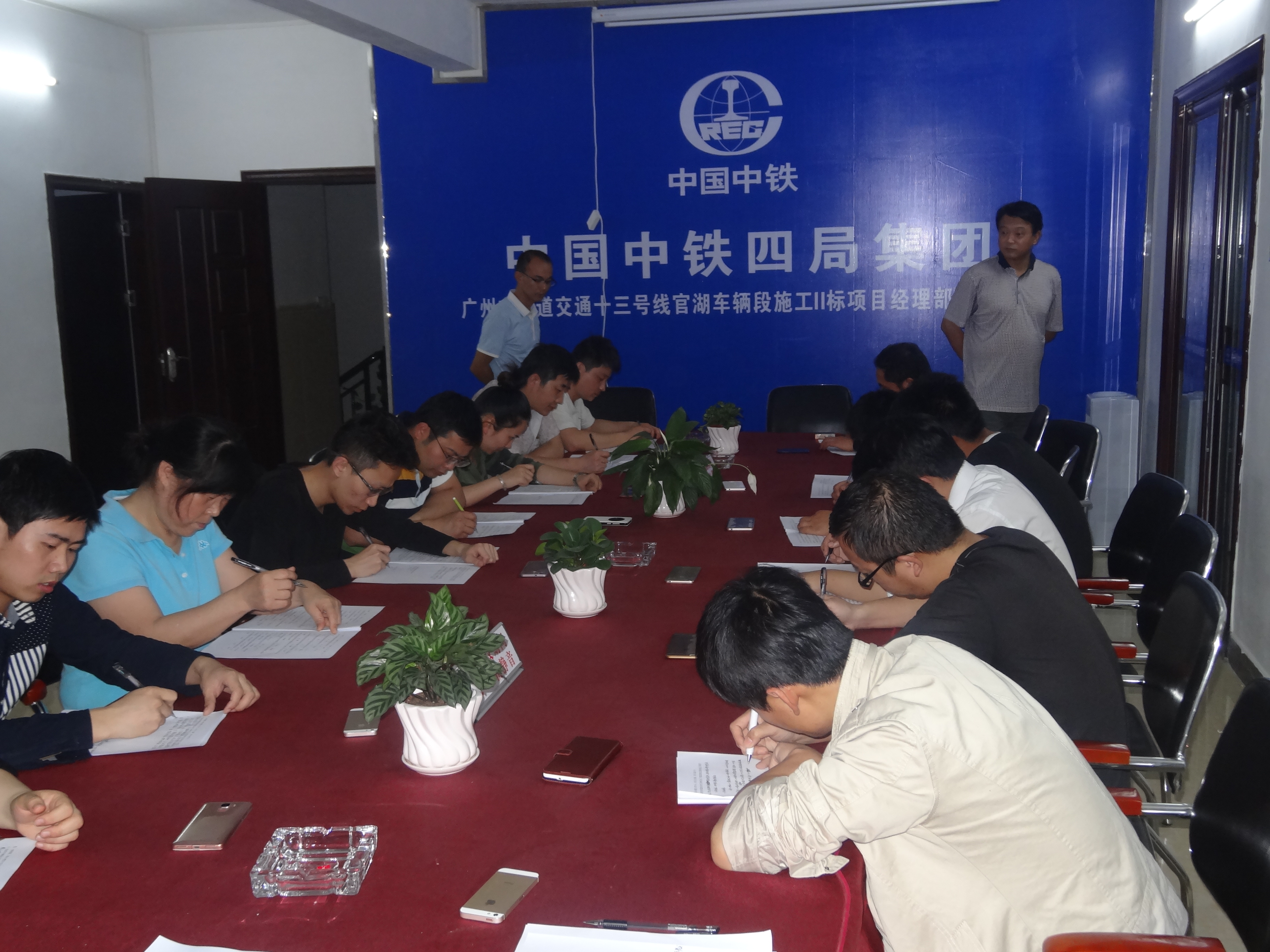 4月13日,广州官湖项目部对施组方案进行闭卷考试,项目部全员参加。