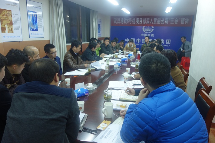 3月12日,武汉地铁6号线项目部召开会议,宣贯公司“三会”精神,安排部署项目部下一步主要工作,进一步统一思想,提高认识,理清思路,动员全体员工为投身武汉地铁建设而努力奋斗。项目部领导班子、经理部各部室负责人、作业队负责人及部分员工共计45人参会。