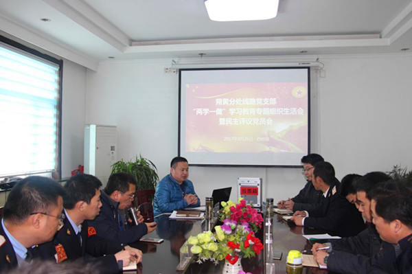 2017年3月25日、28日,按照公司《关于在“两学一做”学习教育中召开专题组织生活会和开展民主评议党员的通知》要求,朔黄运输分处机关、线路及机辆队党支部分别在西柏坡、肃宁地区召开了“两学一做”专题组织生活会暨民主评议党员会议,会议由各党支部书记主持,共有43名党员参加。分处党委书记李根茂与所在支部党员一起学习讨论。