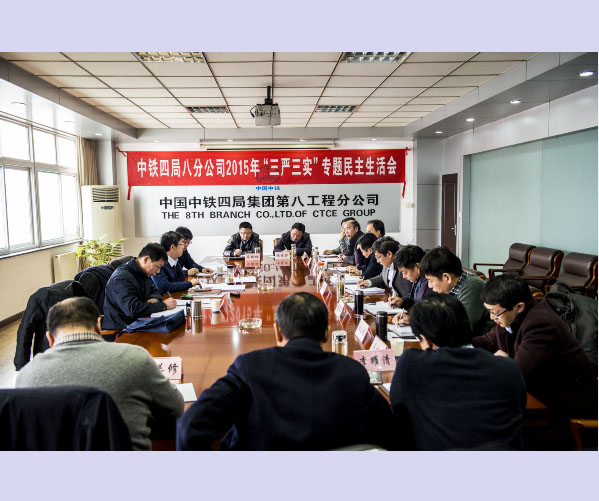 1月21日,八分公司领导班子 “三严三实”专题民主生活会在合肥公司机关召开, 14名公司领导班子结合自身实际,紧扣“三严三实”主题,认真查摆自身在“严以修身、严以用权、严以律己,谋事要实、创业要实、做人要实”等方面存在的主要问题,深刻剖析问题产生的原因,研究明确下一步整改措施,局副总经理耿锦、局组织部副部长辛铁文、局纪监察二室副主任谭伟能参加了会议。