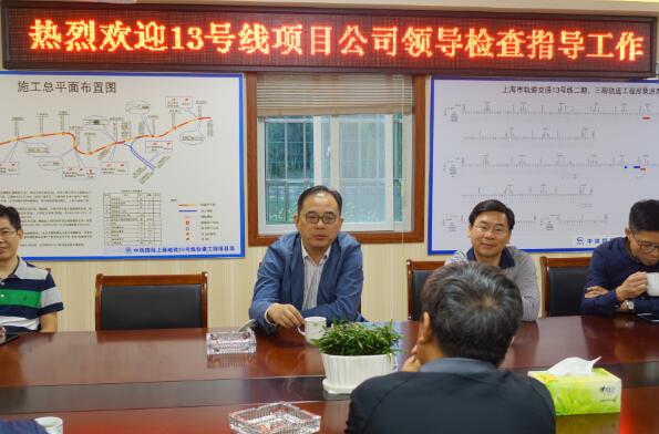 10月12日,上海轨道交通十三号线发展有限公司董事长尤旭东一行在公司总经理李中祥,副总经理汪国龙、赵来军的陪同下,来到上海地铁13号线项目部检查指导工作。