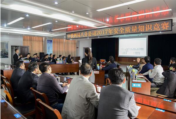 “请简述我局目前推广使用的多媒体安全培训工具箱具有哪些功能?开始答题!?”10月25日至26日,中铁四局八分公司安质部、工会、司办、纪委、宣传部等部门在合肥本部共同举办了“安全质量和施工管理标准化知识竞赛”活动,来自该公司29家项目部的87名管理岗位人员齐聚一堂,同场竞技。