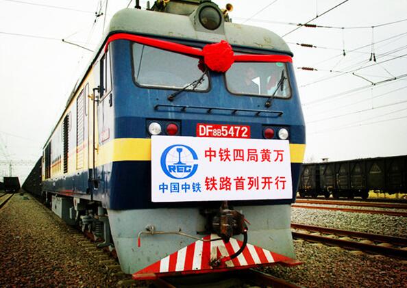 4月12日上午四点二十五分,随着一声汽笛长鸣,满载5676吨煤炭的中铁四局首列6441次列车从黄骅南站缓缓开出。经过5小时8分钟的平稳运行,九点三十三分,列车顺利到达神港站,标志着中铁四局参与黄(骅)万(家码头)铁路的牵引运输正式拉开了序幕。