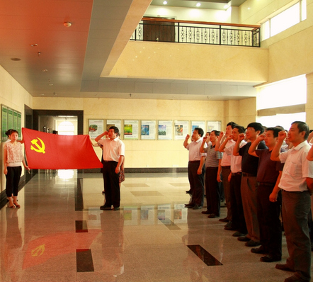 为纪念建党九十周年,七月一日上午八点,公司党委组织机关、医院、物业管理中心等单位的党员,开展了“重温入党誓词”活动。