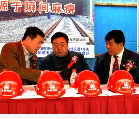 11月26日10时,在古城郑州新建中原东路地铁站,中铁四局两台巨大的龙门吊将一排长25米轨排从车站口缓缓放入,标志着郑州轨道交通一号线开始铺轨。