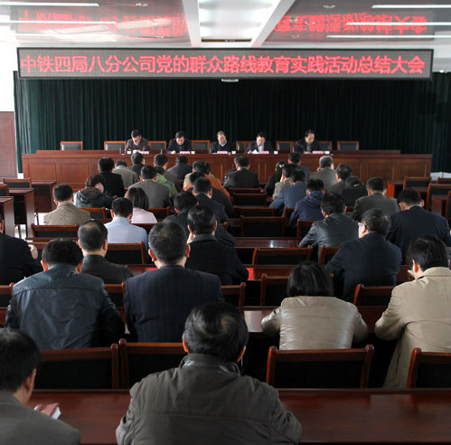 3月21日,八分公司党的群众路线教育实践活动总结大会在合肥召开,局督导组组长杨春山、副组长尹良军、在家的公司领导,以及公司所属合肥地区项目部党政负责人、机关各部门副科职以上、高级职称员工共53人参加总结大会。